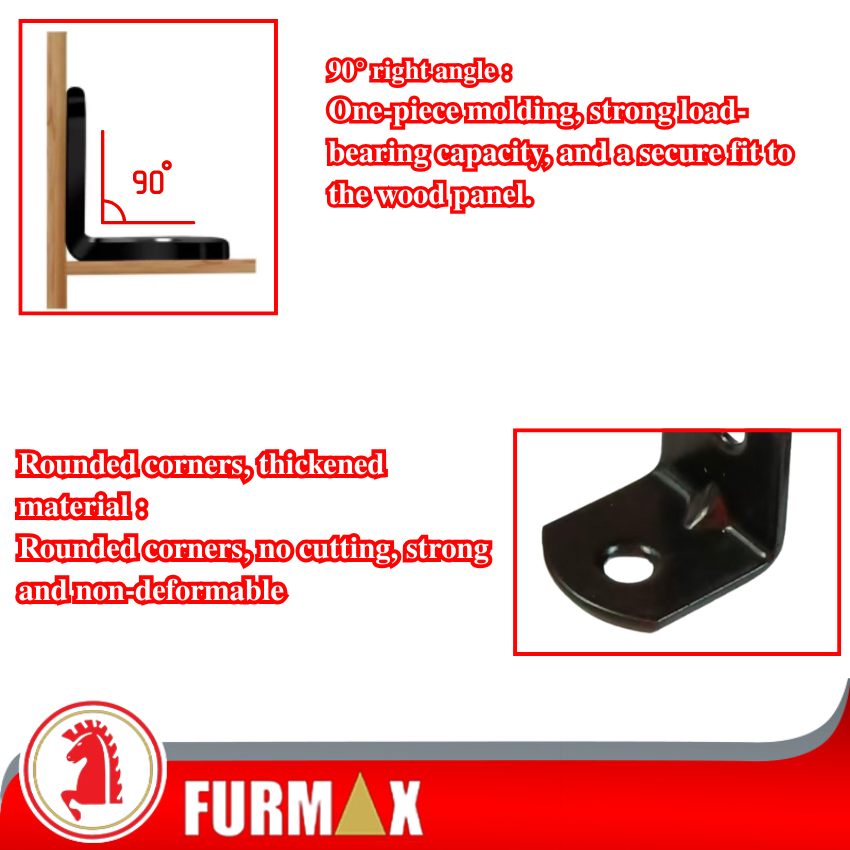 Made of high-quality iron material, this L-shaped corner bracket is rust-resistant, sturdy & won’t warp or deform, ensuring a long lifespan. The black / rainbow-colored coating & rounded edges are smooth & burr-free, ensuring you don’t have to worry about scratching your hands or furniture.