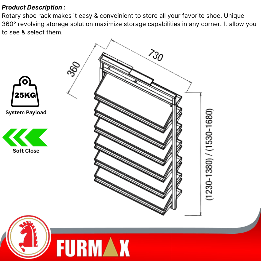 Caldo 419 Rotary Shoe Rack With Soft Close Slide