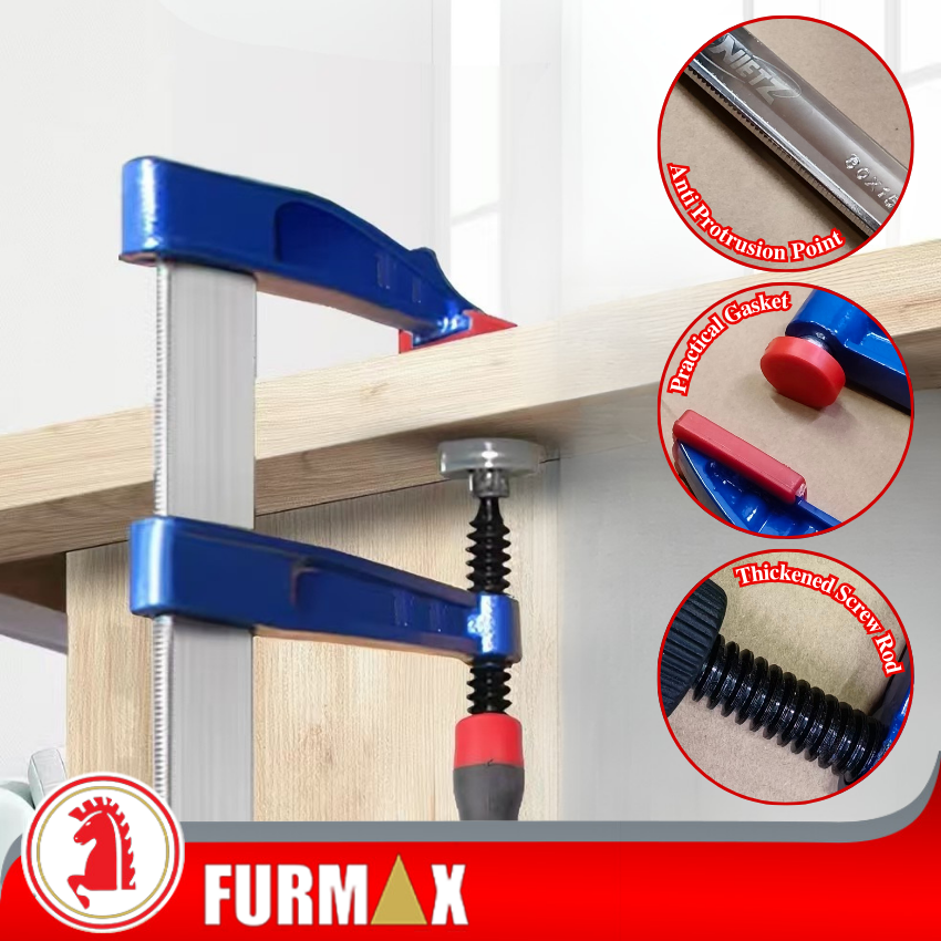 The ‘NIETZ’ heavy duty F clamp is a high-strength clamp that provides a powerful gripping effect, ensuring the workpiece remain firmly in place. Its F-type design allows for quick adjustment of the clamping range, making it suitable for professional woodworkers & home users.
