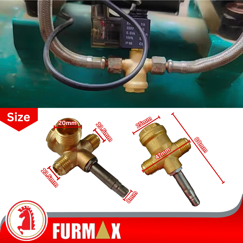 This 3-way air compressor check valve with tube connector is made of high-quality solid brass, designed to connect the our tank, compressor pump & pressure switch. It allows air to flow in one direction while preventing back flow from the tank, ensuring stable operation & prolonging compressor lifespan.