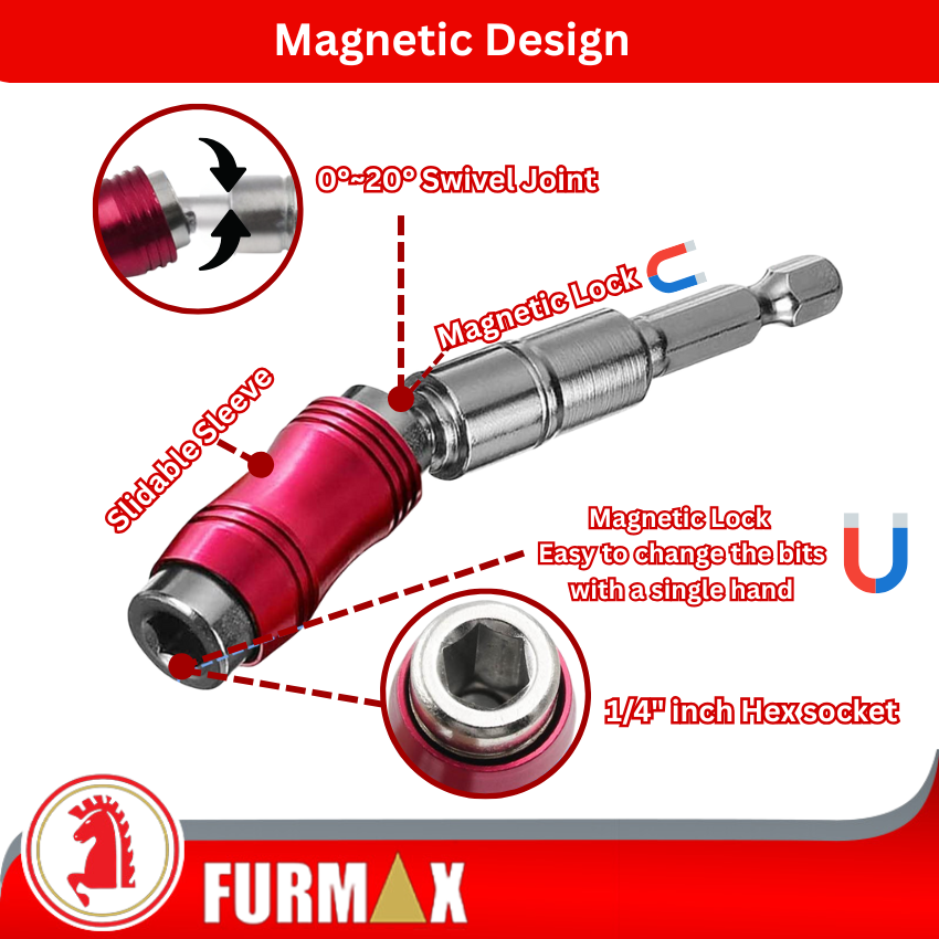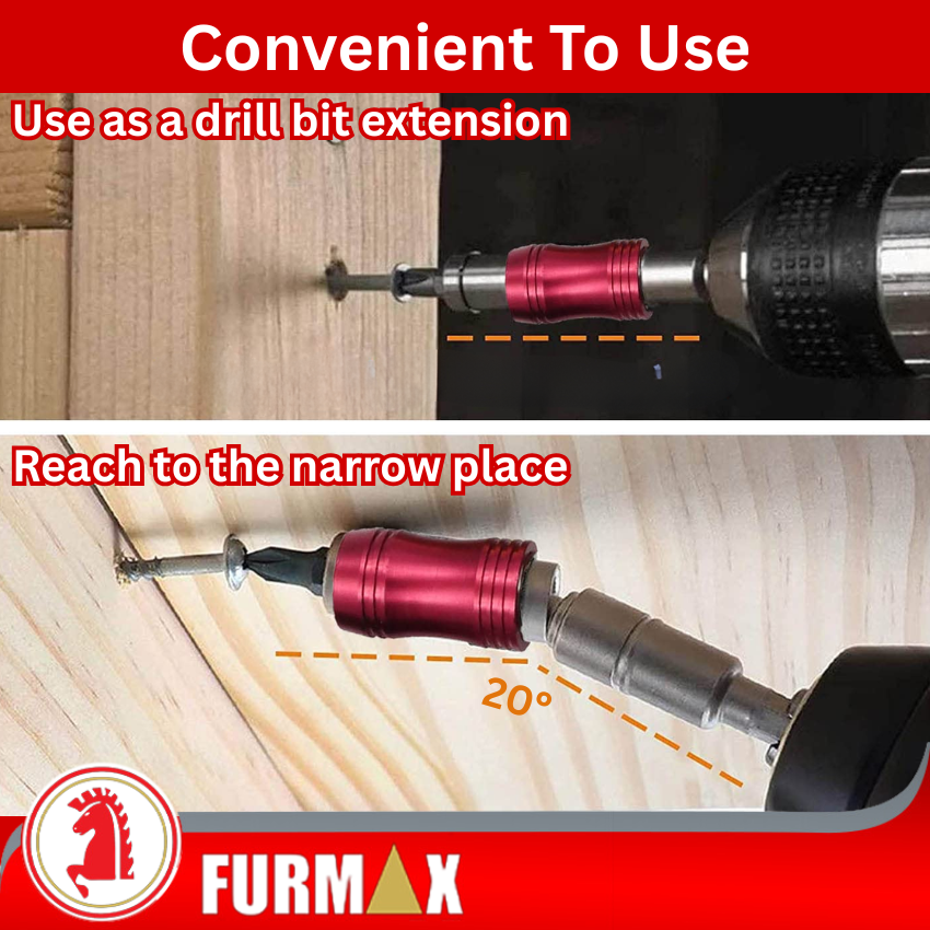 • This bit holder is a professional tool accessory designed for narrow spaces, corner positions & angled screw.